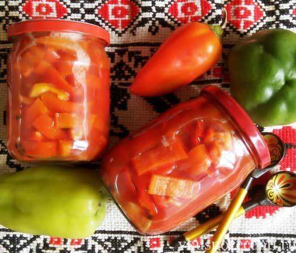 Рецепт сладкого болгарского перца в томатном соке, консервированного целиком в банках на зиму: