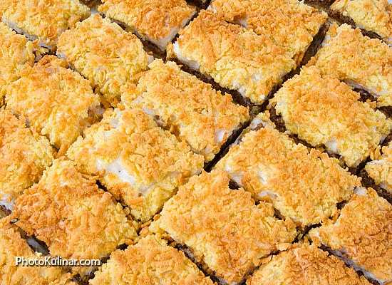- Достаём из холодильника коричневое тесто и натираем на крупную тёрку, равномерно распределяя крошку поверх повидла. Тесто в холодильнике слегка твердеет, поэтому натирается легко. А на тёрке его надо крошить, чтобы получились красивые равномерные «стружки».