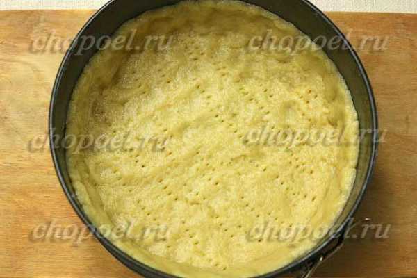 Раскатайте корж, уложите его в форму для выпечки и поставьте в холодильник на 30 минут.