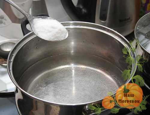 - В отдельной емкости необходимо сварить солевой раствор из воды и нужного количества соли;