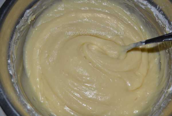 Все хорошо перемешиваем, затем постепенно добавляем оставшуюся муку и хорошо перемешиваем тесто, чтоб не было комочков. У меня получилось тесто напоминающее густую сметану.