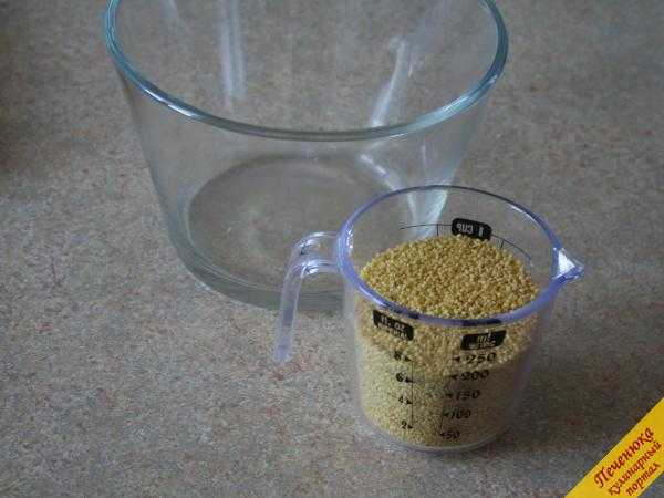 Отмеряем пшенную крупу мерной чашкой от мультиварки и высыпаем в посуду, в которой будем ее промывать.