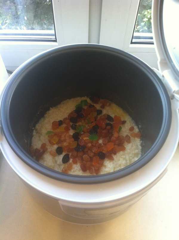 Высыпал прямо в нее разомлевший изюм с цукатами:
