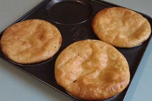 45-60 мин длится подъем теста. Далее заполняем формы тестом наполовину или на 2/3. Можно дать расстояться минут десять, можно сразу ставить в прогретую до 190 градусов духовку на 20 минут.