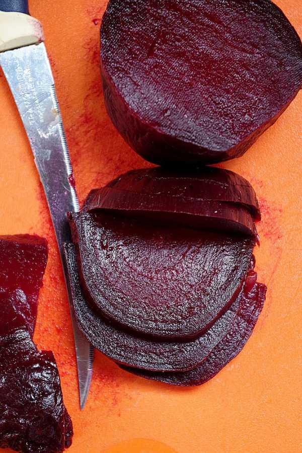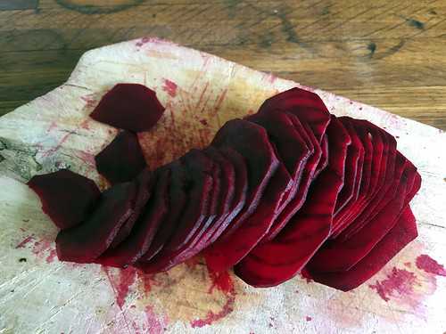 Получается красота, свекольные в точности похожи на осыпавшиеся лепестки темно-бордовой розы.