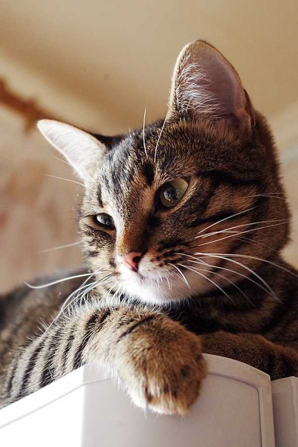 Бонусом. Хотите на нашу кошку посмотреть? Касей зовут, подобрашка 🙂 Зимой кто-то занес к нам на 9й этаж двух маленьких котят, диких и жутко милых. Один котенок вскоре удрал на улицу, а наша мелочь осталась и долго пряталась на чердаке, мяукала в непогоду, удирала, как только к ней тянули руку. Не знаю, каким чудом, но моей маме удалось поймать эту дикарку, с тех пор кошка живет с нами, растет, беспрестанно красивеет и полосатится. Фоткаться не любит, поэтому,чтобы хоть как-то снять ее, пришлось дать запрещенную вкусняшку.