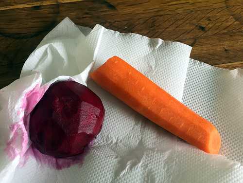 Есть альтернатива! Чипсы можно сделать, во-первых, самостоятельно, во-вторых, не из картошки. Свеклу и морковку нужно почистить и обсушить бумажным полотенцем, лишняя влага нам не нужна.