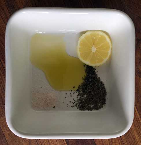 Основой заправки, которая, в конечном итоге, и придаст вкус вашим чипсам, является масло (я однозначно предпочитаю оливковое). Букет, который вы на базе масла создадите, определяется только вашими предпочтениями — помимо соли в него может входить и черный перец, и красный жгучий, и паприка, и куркума и вообще что пожелаете. Мой устоявшийся вариант — масло, лимонный сок, соль (лучше морская) и прованские травы.