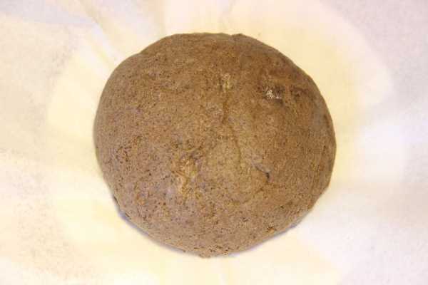 - Возьмите тесто влажными руками и переместите его в форму для выпечки или на бумагу для выпечки. Смоченной в воде деревянной лопаткой подравняйте крышку и края хлеба и слегка помните его внутренней стороной ладони (тоже мокрой), чтобы убедиться, что внутри нет пустот. Финальная расстойка — от 40 до 60 минут при температуре 30 градусов (возле кухонной батареи, например). После того, как тесто вырастет примерно на 2-3 сантиметра, нужно смазать его видимые части теплой водичкой с помощью пекарской кисти.