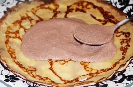 - Убрать крем в холодильник на час, а затем перемазать ею все блины. Можно покрыть и сверху;