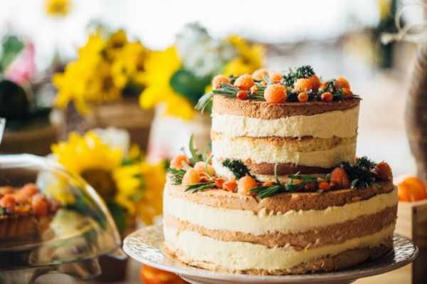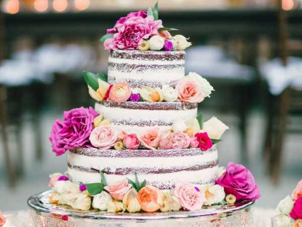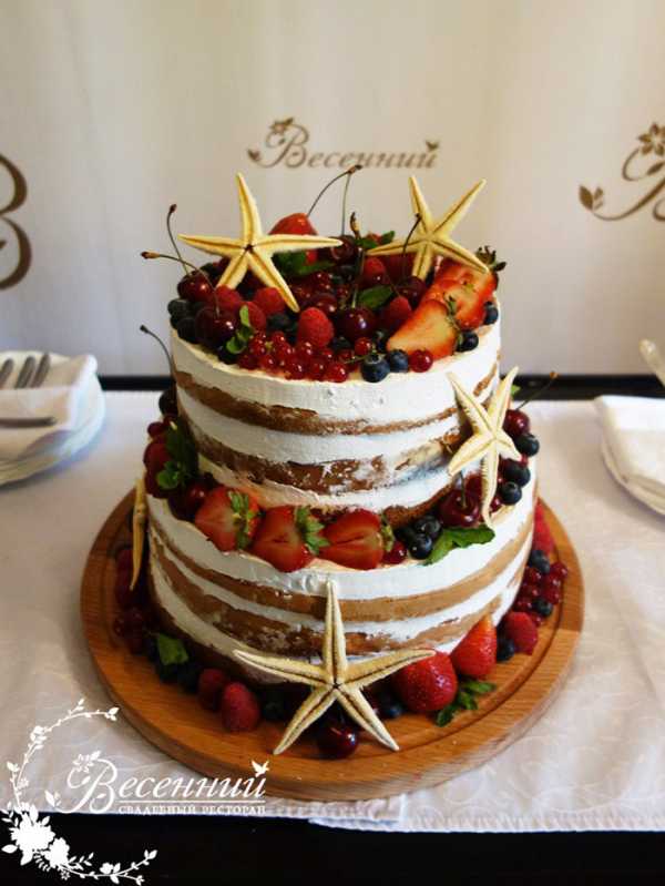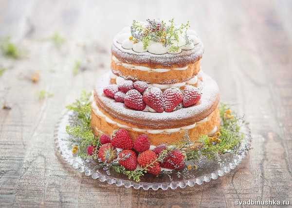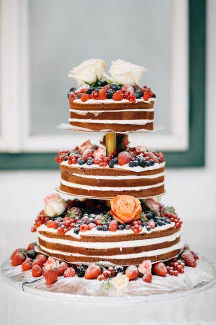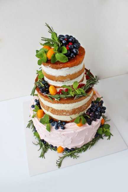 Торт на свадьбу без мастики часто называют «голым», поскольку он имеет минималистичный декор. Бисквитные коржи, соединенные друг с другом при помощи воздушного крема, смотрятся очень оригинально и стильно. Упор в таком десерте кондитеры делают на декоре и начинке свадебного торта. Такие угощения прекрасно вписываются в формат свадьбы в стиле рустик, бохо или прованс, где простота и легкость являются ключевыми «фишками» праздника.