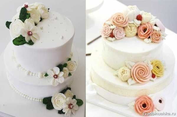Двухъярусные свадебные торты без мастики становятся все более популярными среди современных молодоженов, ведь они выглядят на фото стильно и эффектно. Они бывают трех видов: