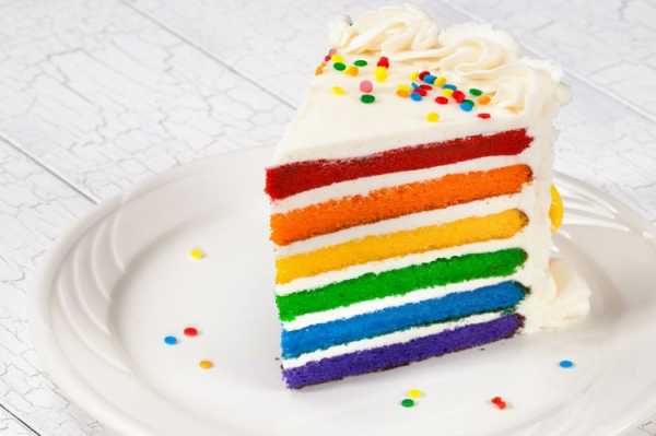 Также вы можете использовать пищевые красители и окрасить ваш многоярусный свадебный торт во все цвета радуги, замаскировав цвет коржей с помощью крема. Отличный сюрприз для гостей, которые увидят всю красоту десерта только в разрезе!
