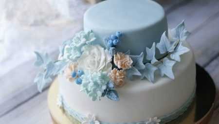 Двухъярусные свадебные торты с кондитерской мастикой отличаются идеально ровными формами и текстурами. Кроме того, из этой сладкой массы делают не только покрытие торта, но и всевозможные фигурки для украшения десерта: бусины, цепочки, бантики, фигуры людей или животных, сердечки, цветы – все, на что хватит фантазии. В мастику добавляют пищевой краситель, поэтому двухъярусный свадебный торт может быть не только белым, но и цветным.