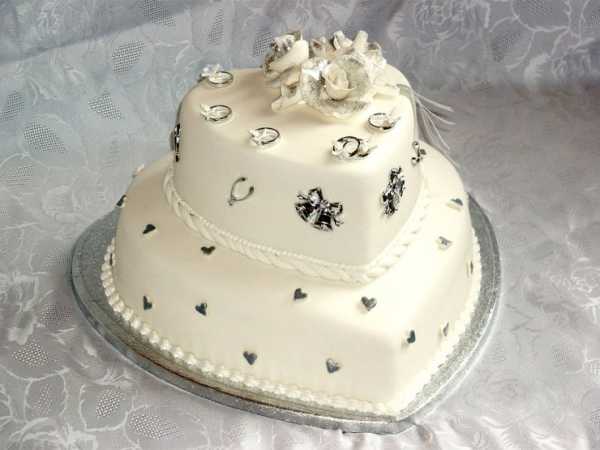 Необычайно мило смотрятся двухъярусные кремовые свадебные торты в форме сердец. А может, вам по душе придутся асимметричные стилизованные шедевры.