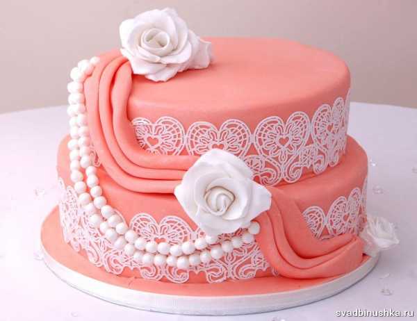 Отличным вариантом является двухъярусный свадебный торт. Правда, если на торжестве не планируется большое количество гостей, нужно иметь в виду, что минимальный вес такого десерта — 3 кг.
