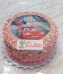 На верхнюю часть торта наносим взбитые растительные сливки, белковый или масляный крем , разравниваем и укладываем вафельную картинку. Картинку можно вырезать.