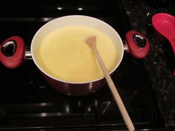 Для его приготовления берем небольшой, желательно неглубокий ковш. Вбиваем яйца и растираем их с мукой и сахаром. Вливаем прохладное молоко, ставим на небольшой огонь, доводим до загустения при постоянном и непрерывном помешивании.