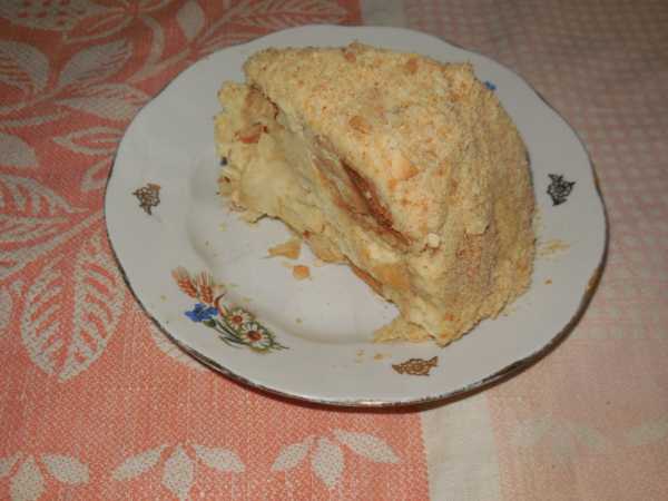 Посыпаем наш быстрый Наполеон в форме заранее приготовленной крошкой из теста.