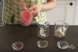 8. Готовый крем разделите на несколько частей для украшения белого, цветного и шоколадного цвета. В часть крема просейте какао, перемешайте миксером. Еще часть разделите и смешайте с красителями красного, зеленого и синего цвета.