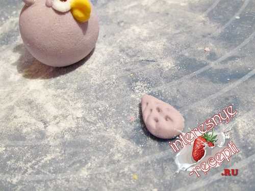 15. Для крыльев необходимо кусочки мастики скатать в шар, затем формировать каплю. Капли приплюснуть и стеком (или ножом) имитировать перья.