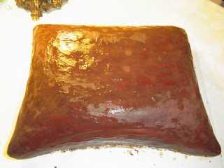 Это я мАзю.Покрыть только до середины торта.После первого раза — в холодильник, хотя бы мин на 15, потом второй слой.