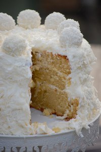 Бока торта обсыпаем кокосовой стружкой (по желанию, вы можете обсыпать торт полностью и подавать его в таком виде).
