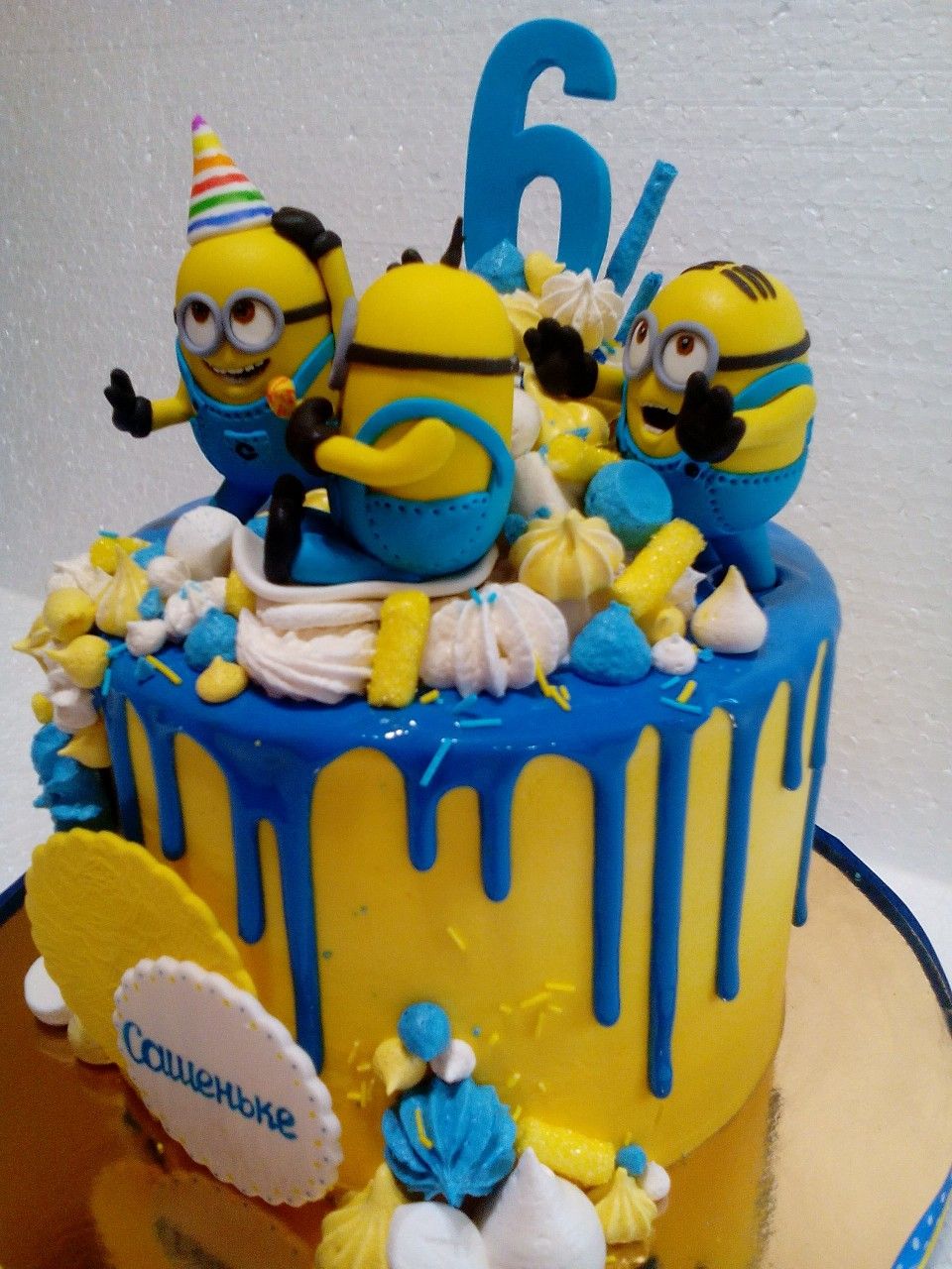 Этот торт я делала на ДР сына своей знакомой. Было очень увлекательно делать миньона. Этих персонажей в мультфильме много, и все они разные, экспериментировать можно долго. Фото не передает, какой торт яркий и позитивный. Всем очень понравился и вкус, и вид.