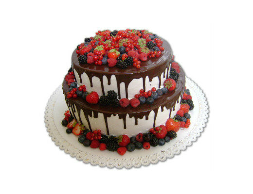 — Торт Музыка любви: Медовые коржи, сметанный крем со сгущ. молоком, грец. орех, фрукты