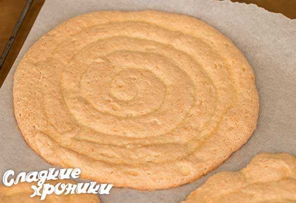 И, при помощи спатулы или длинного ножа, снять с пергамента (или убрать противень с заготовками в сторону, до момента сборки торта).