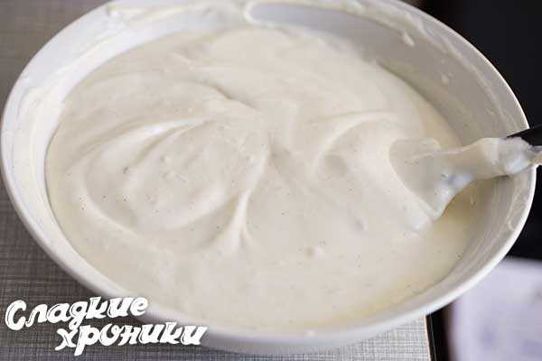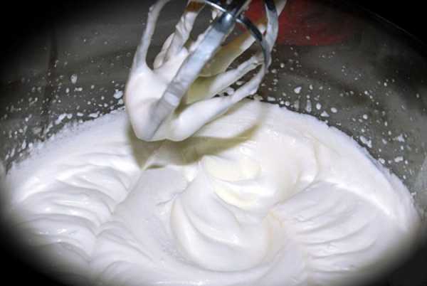 3. Затем тщательно взбиваем оставшиеся сливки. Это займёт некоторое количество времени, так как сливочная масса должна получиться пышной.