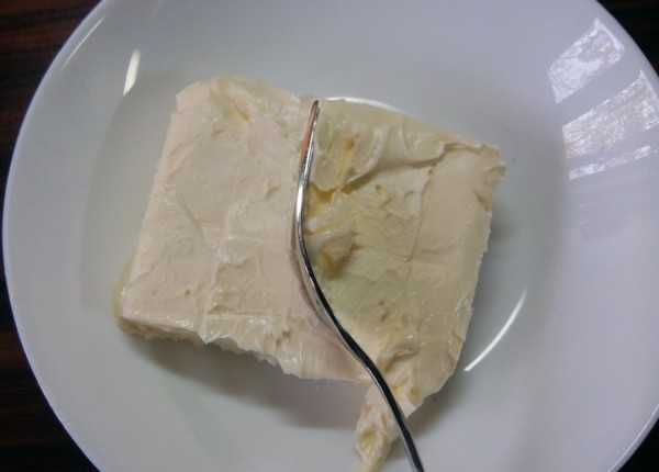 Ставим чашку на газ. Слегка подогревая, разминаем масло до тех пор, пока оно не приобретет консистенцию густой сметаны. Снимаем чашку с огня и взбиваем масло в течении 5 минут. Смотрите фото.
