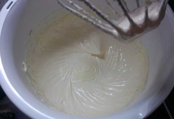 Продолжаем взбивать. Если крем начал «отсекаться» или «расслаиваться» — нужно прекратить взбивать, охладить и снова перемешать.