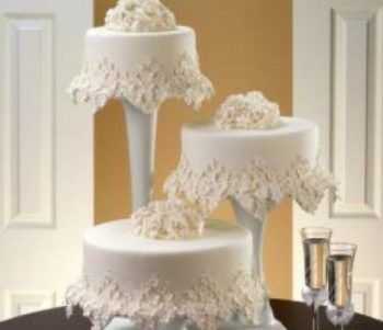 Великолепный вид имеет двухъярусный или трёхъярусный белый свадебный торт на специальной подставке-этажерке. Каждый ярус размещается на отдельной тарелке-подставке, что позволяет совместить красоту и объем торта с удобством при нарезании.